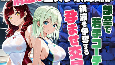 【4K】清楚な白スク水姉妹が部室で若手コーチの精液を争奪する孕ませ交尾